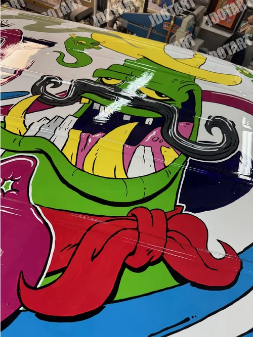 Painted on the inside of the Lowe Life Kustoms garage. AMC Gremlin and Big Daddy Roth inspired 5’ monster. 2019.
